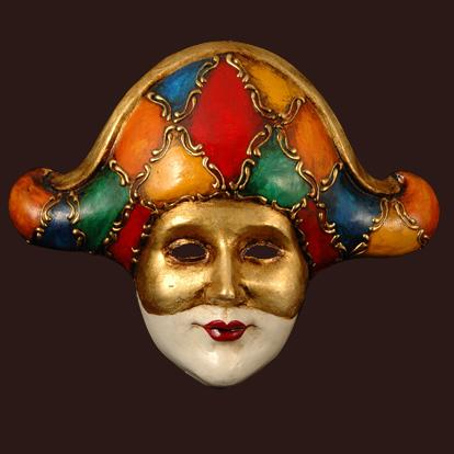 La también conocida como Larva o Volto es la máscara ovalada y hierática que más se suele asociar a la maschera nobile, y se presta a elaboradas decoraciones y el acompañamiento con sofisticados antifaces.